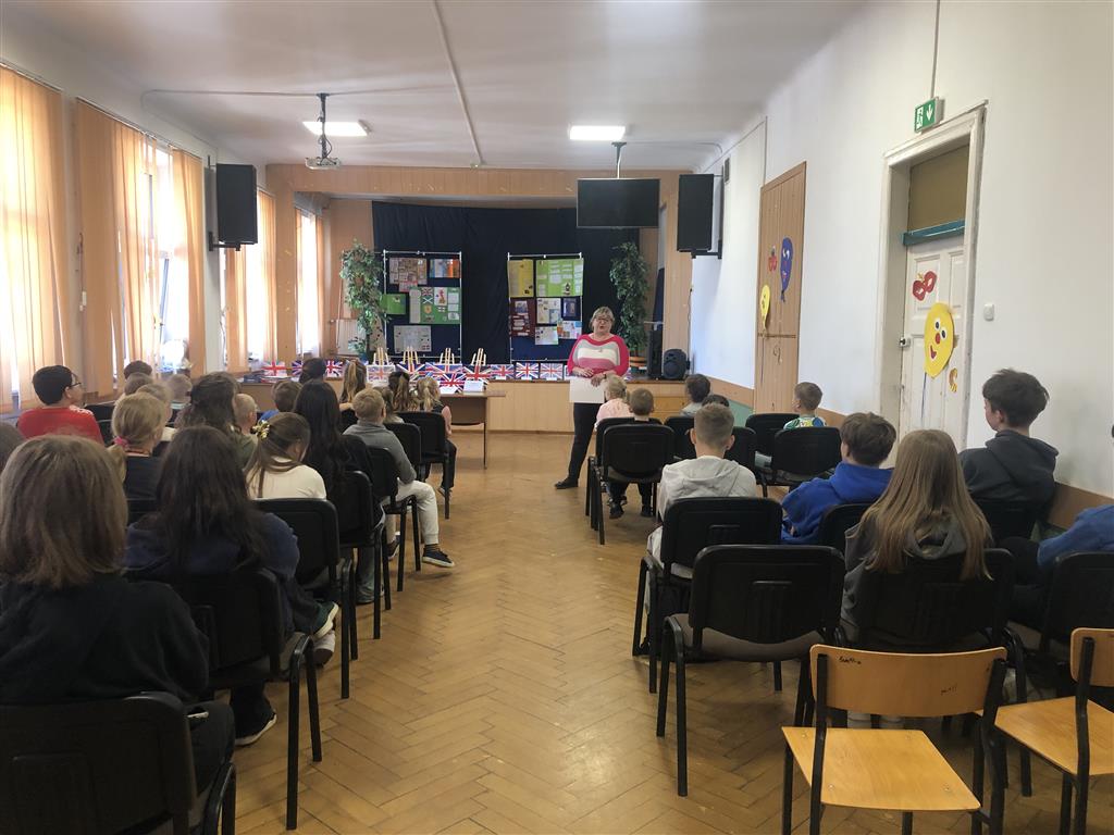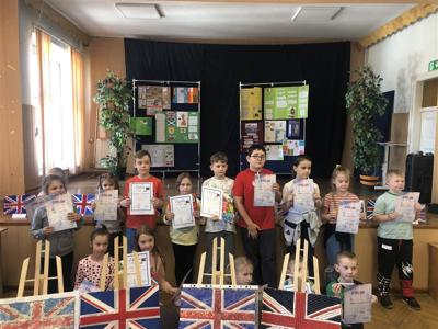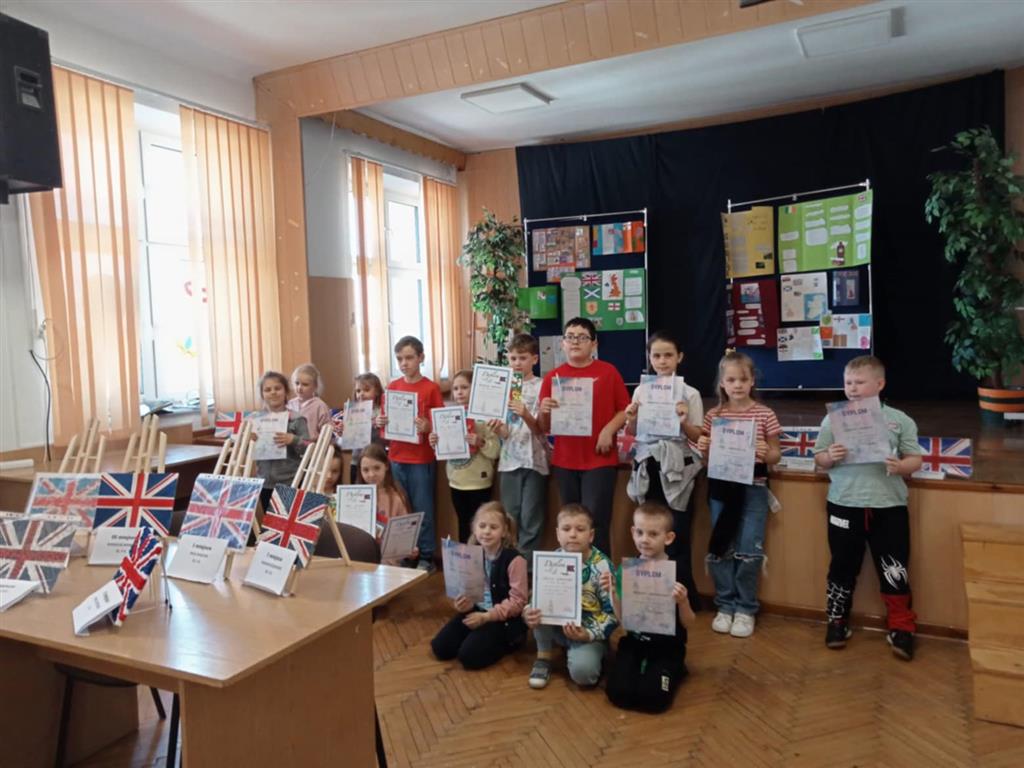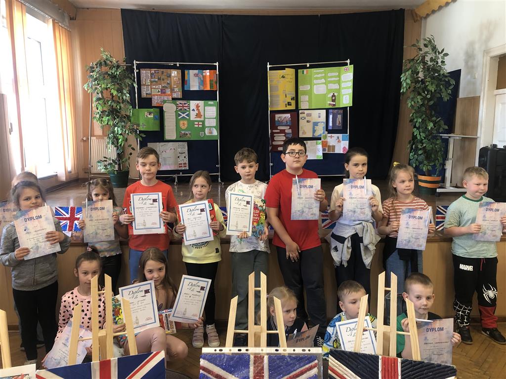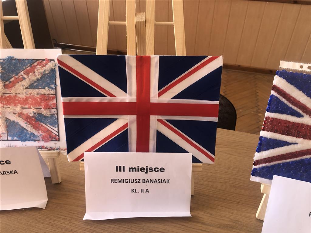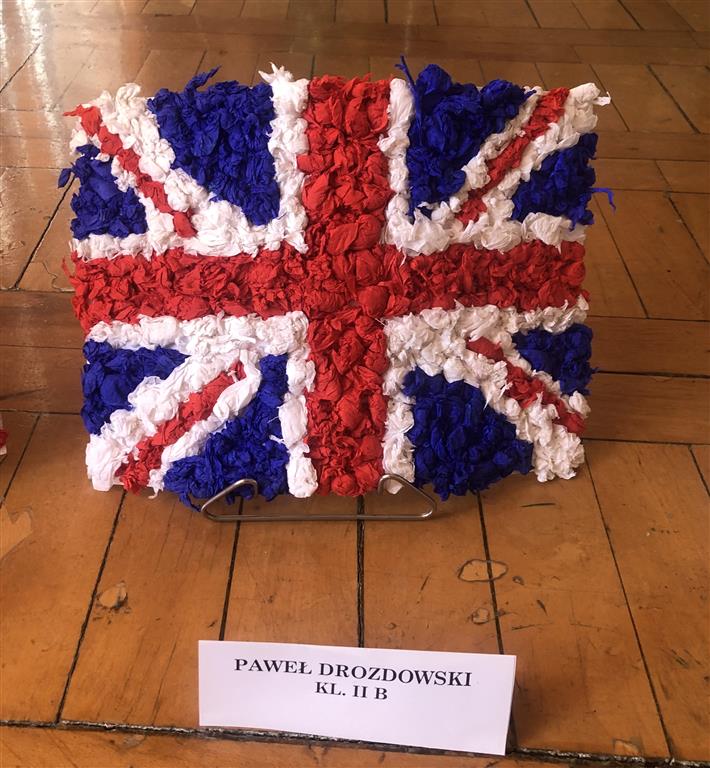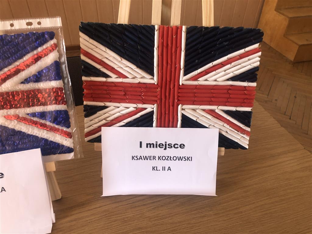 Z tej okazji w naszej szkole odbyły się dwa konkursy dla uczniów. Pierwszy konkurs przeznaczony był dla uczniów kl. I – III i polegał na przedstawieniu dowolną formą plastyczną flagi Wielkiej Brytanii. Komisja konkursowa miała bardzo trudne zadanie, bowiem wszystkie prace, które przekazano organizatorom konkursu były pięknie i starannie wykonane. 25 kwietnia br. ogłoszono wyniki i wręczono uczniom dyplomy i nagrody ufundowane przez Radę Rodziców, za co organizatorzy serdecznie dziękują.
