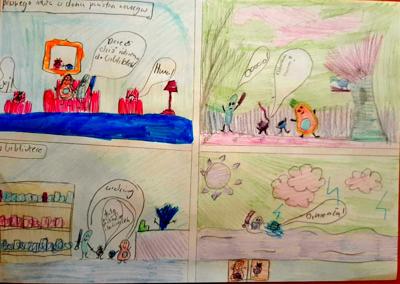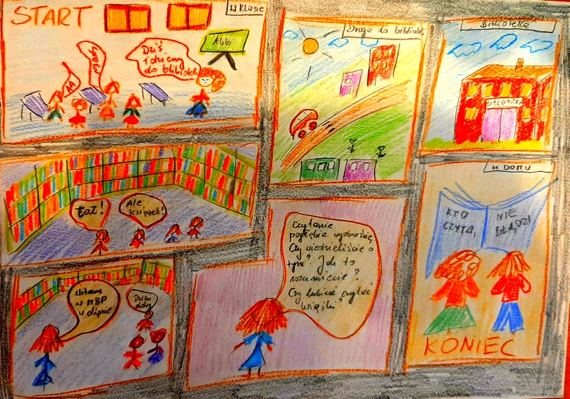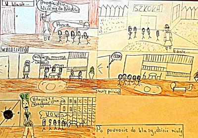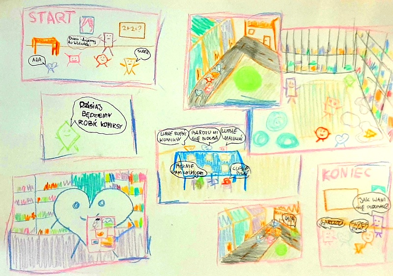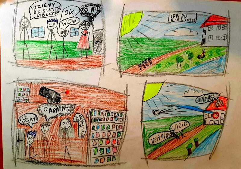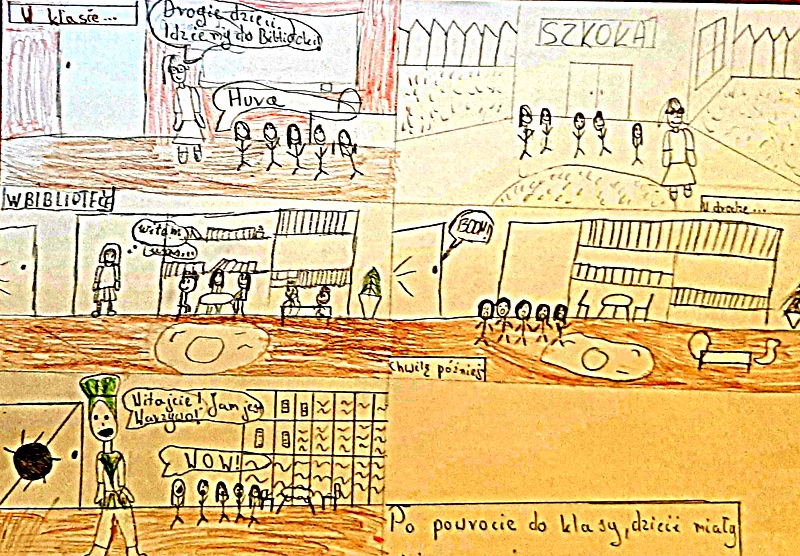 Uczniowie pracując w parach stworzyli własne historyjki obrazkowe,