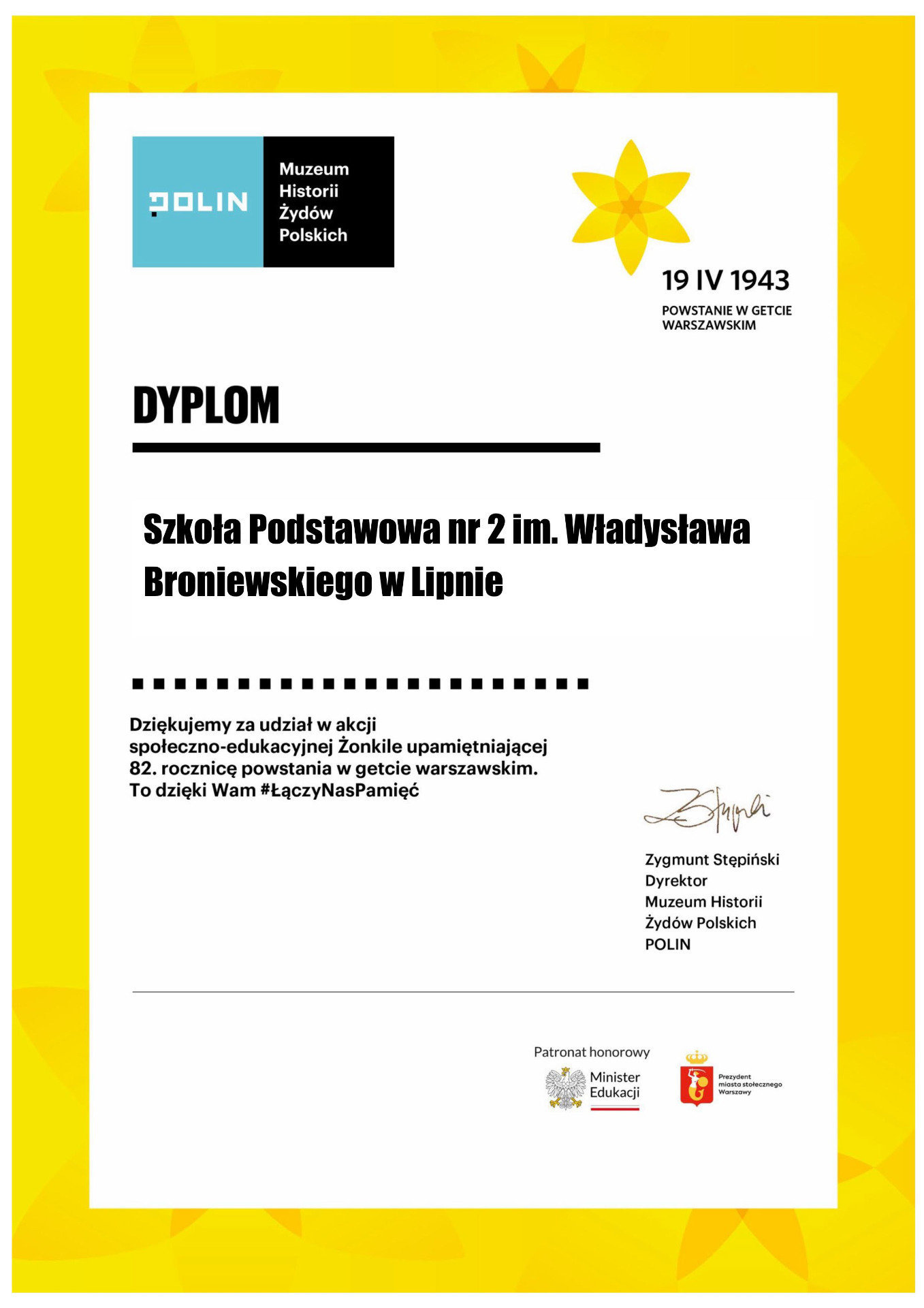 SP 2 otrzymała DYPLOM za aktywny udział w akcji ŻONKILE, czyli inicjatywę społeczno-edukacyjną