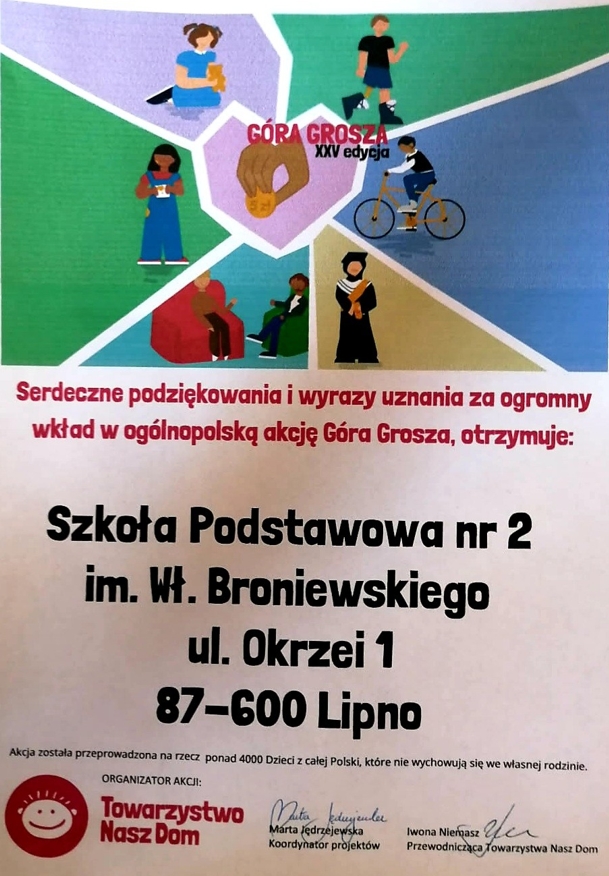 Podziękowanie za wkład w ogólnopolską akcję "GÓRA GROSZA"