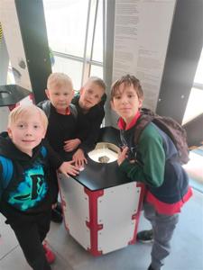 Druga część naszego pobytu to wystawy interaktywne. Można było tu zbadać w bardzo nietypowy sposób swój wzrok – czy jest się krótkowidzem, czy dalekowidzem oraz znaleźć odległość, w jakiej powinien być umieszczony przedmiot, abyśmy dobrze go widzieli. Sprawdzaliśmy również, czy mamy „orli wzrok”, czyli z jakiej odległości zobaczymy zające. Oprócz wzroku można było zbadać słuch i określić skąd dobiega dźwięk, to było tak zwane słyszenie kierunkowe. Przekonywaliśmy się, jak długo trwa minuta, a także analizowaliśmy na bieżni nasz chód oraz patrzyliśmy, jak poruszają się osobno nasze nogi.