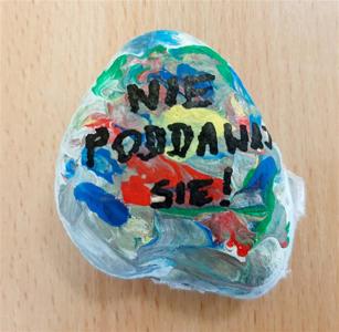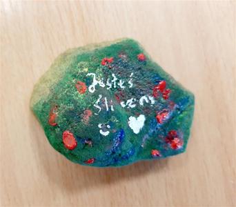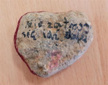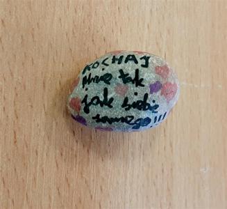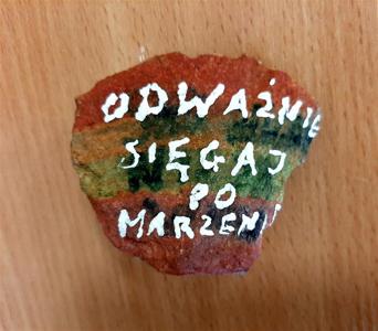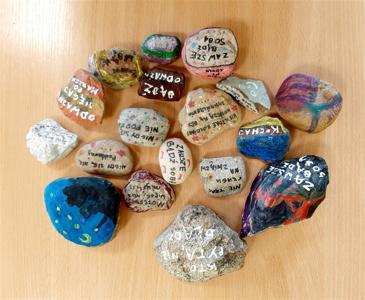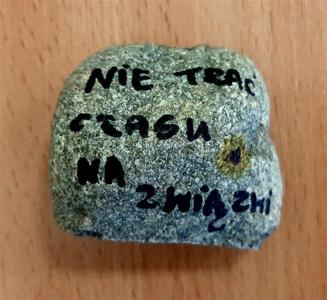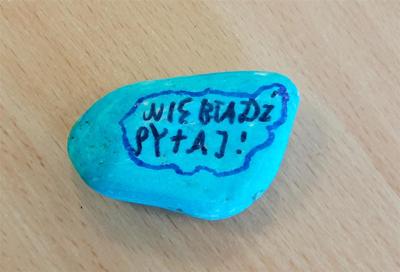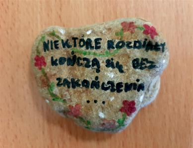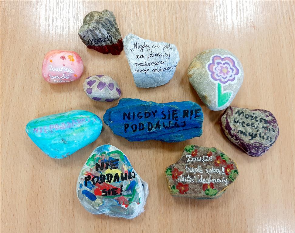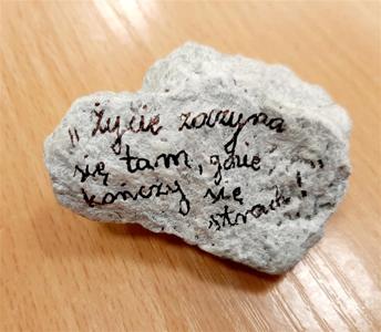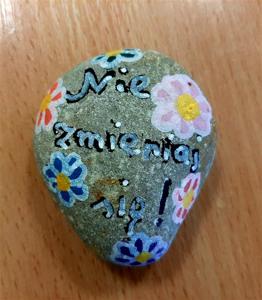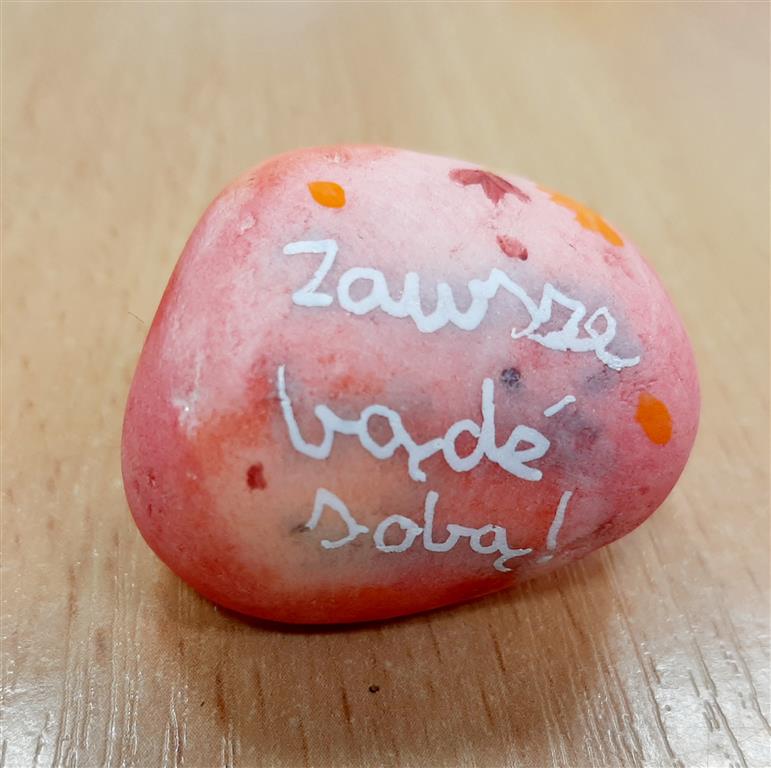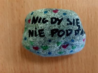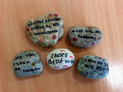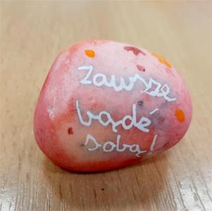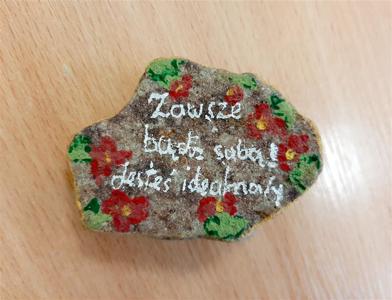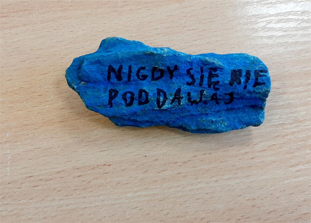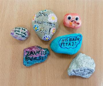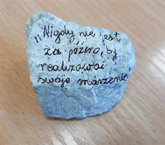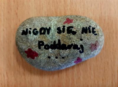 Tak też powstały KAMYKI Z PRZESŁANIEM, które każdy z uczniów może zamknąć w swojej dłoni