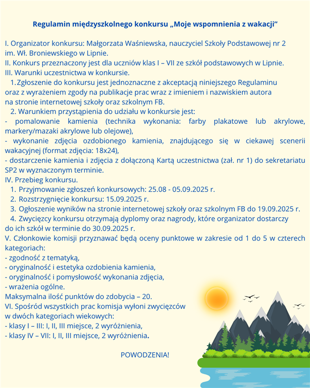 MIĘDZYSZKOLNY KONKURS PLASTYCZNY "MOJE WSPOMNIENIA Z WAKACJI"