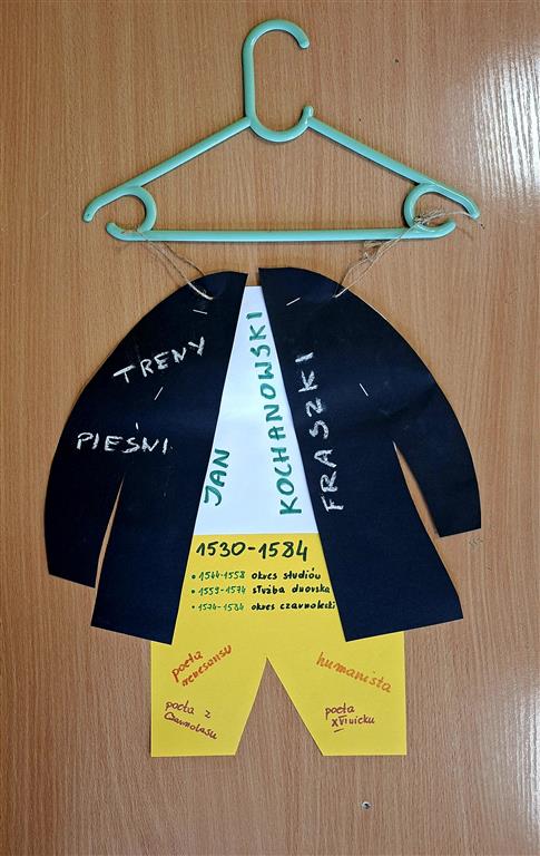 Pracując w grupach ubrali wieszaki w informacje o poecie z Czarnolasu.