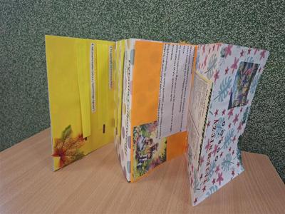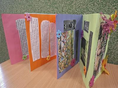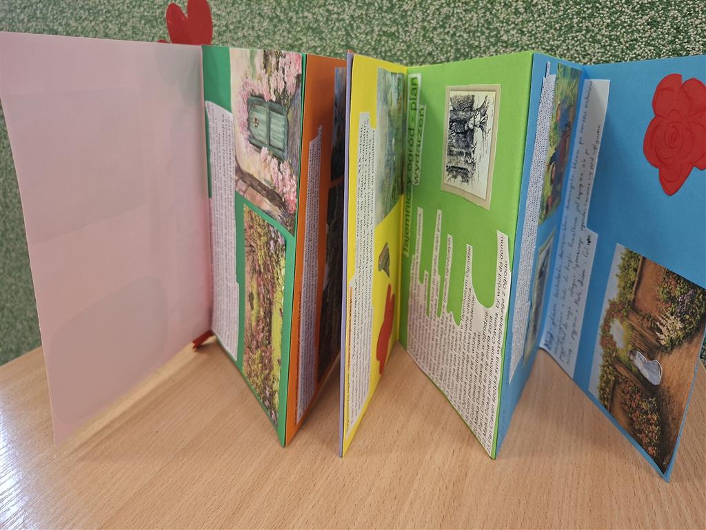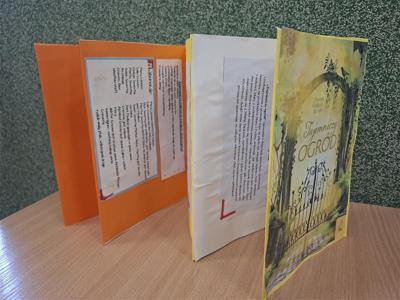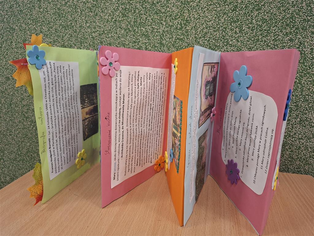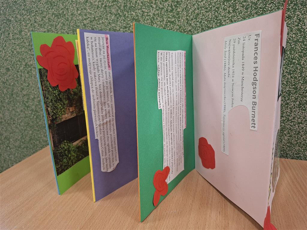 na których omawiali lekturę „Tajemniczy ogród”. Pracując w grupach stworzyli książeczki-harmonijki,