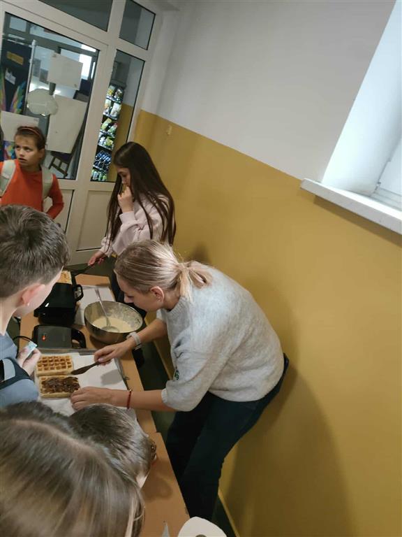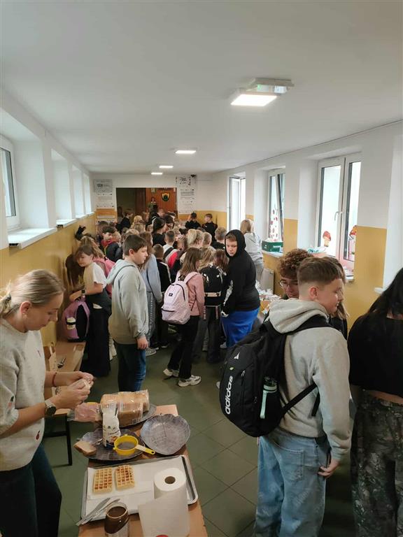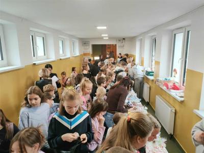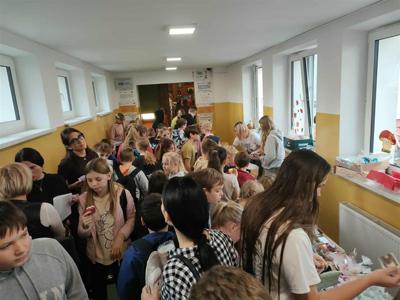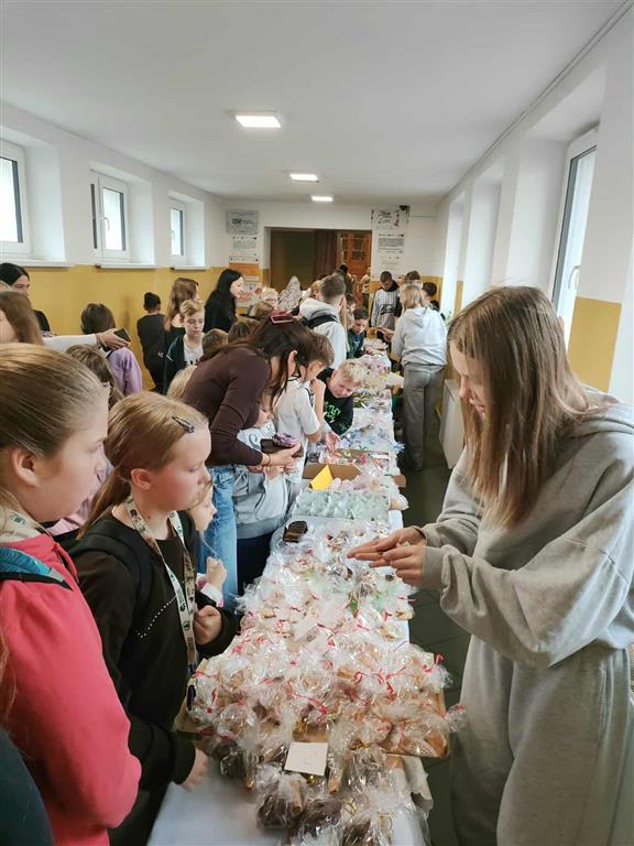 Do przygotowań i obsługi kiermaszu z zaangażowaniem dołączył szkolny wolontariat,
