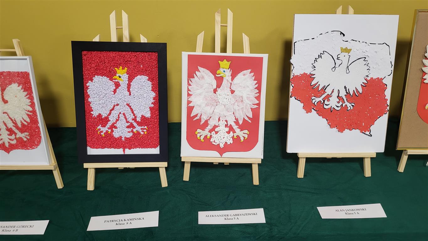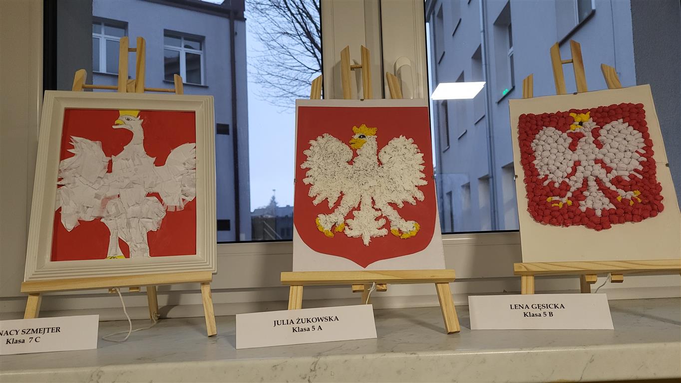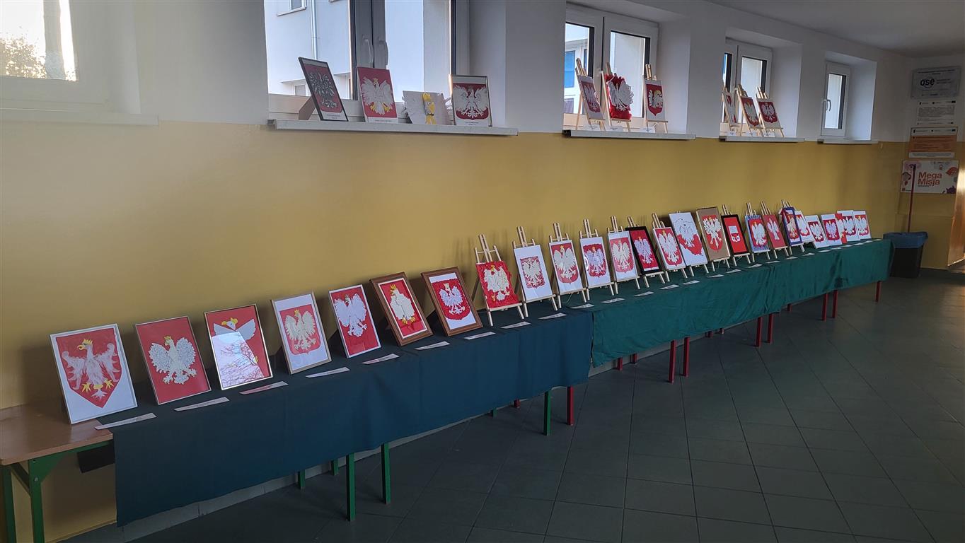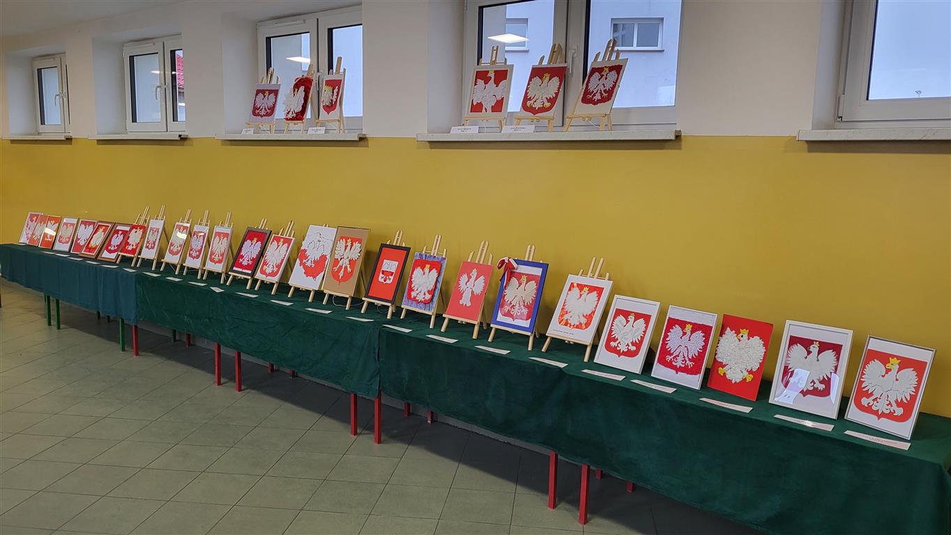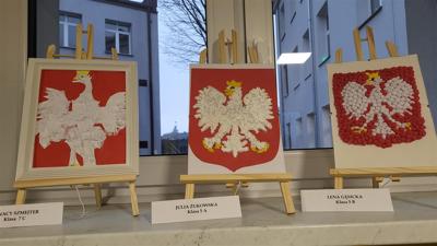 Z okazji Narodowego Święta Niepodległości uczniowie klas 4 - 8 przygotowali wystawę patriotyczną