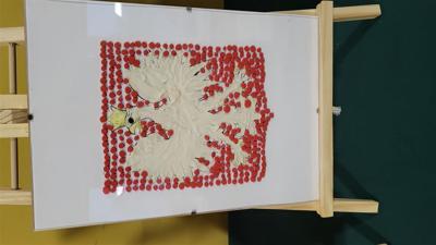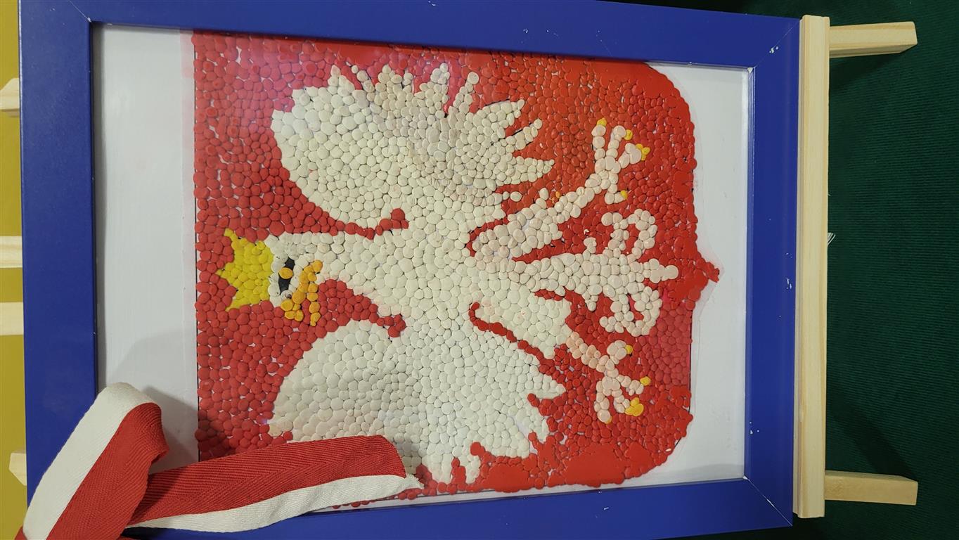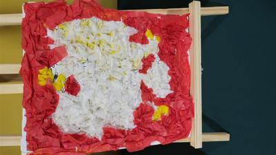 Wykorzystano bibułę, plastelinę, piankę, klocki Lego, pompony, watę, firanę, płatki kwiatów,