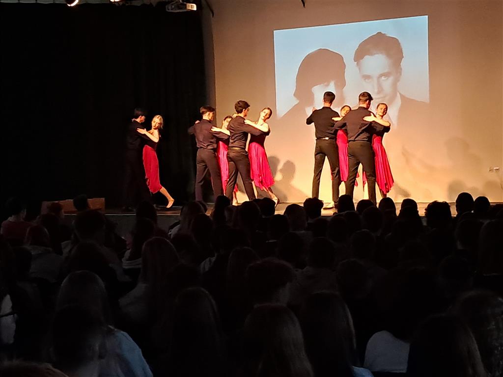 Uczniowie mieli okazję zanurzyć się w fascynującą historię Poli Negri, podziwiać piękne tańce, kostiumy oraz muzykę,